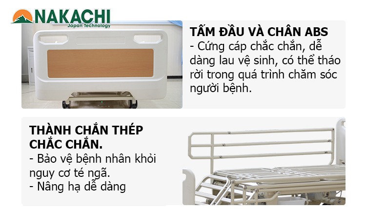 -Khung giường y tế Đa Năng Nâng Hạ Chiều Cao Nakachi NC-BVH07 được làm từ thép hộ có độ dày cao, sơn tĩnh điện nhám rất chất lượng mang lại sự chắc chắn sang trọng và độ thẩm mỹ cao cấp nhất trong phân khúc hiện nay. Khung giường bệnh nhân Nakachi NC-BVH07 chịu được tải trọng lên tới 300kg nên thuận tiện an toàn cho người bệnh và người chăm sóc bệnh nhân.