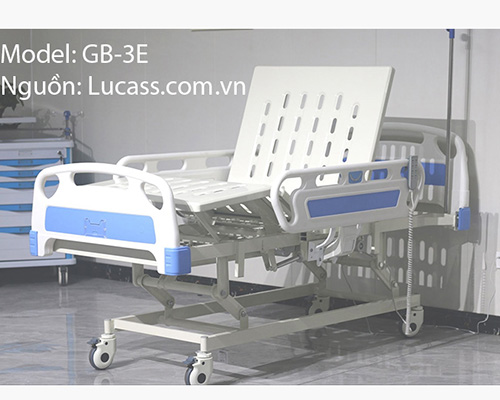 6 Giường y tế điện 3 chức năng GB-3E: so với giường điện 2 chức năng mẫu giường y tế 3E có thêm tính năng nâng hạ chiều cao toàn bộ giường, nâng tối đa 75cm và hạ tối đa 45cm. Tính năng này hỗ trợ người già di chuyển rời khỏi giường với chiều cao phù hợp giúp ổn định cơ thể và bước ra khỏi giường an toàn hơn. Còn đối với tính năng nâng cao của giường y tế 3E thì mục đích là để quá trình vệ sinh cá nhân cho người bệnh tốt hơn, tạo điều kiện cho y tá, điều dưỡng đỡ vất vả hơn trong quá trình khám chữa bệnh tịa bệnh viện cũng như chăm sóc tại nhà.